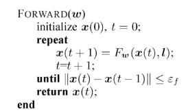 原始论文中的Forward是通过一个repeat操作不断地对节点的状态进行更新。而状态转换函数fw实际上可以是一个神经网络,那么循环操作就可以用下图表示: