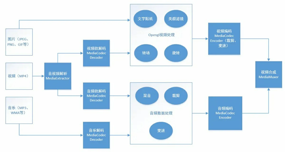 @TargetApi(Build.VERSION_CODES.LOLLIPOP) publicstaticbooleangenVideoUsingMuxer(Context context, String srcPath, String dstPath, int startMs, int endMs, boolean useAudio, boolean useVideo)throws IOException { booleansuccess=true; // Set up MediaExtractor to read from the source. MediaExtractorextractor=newMediaExtractor(); extractor.setDataSource(srcPath); inttrackCount= extractor.getTrackCount(); // Set up MediaMuxer for the destination. MediaMuxer muxer; muxer = newMediaMuxer(dstPath, MediaMuxer.OutputFormat.MUXER_OUTPUT_MPEG_4); // Set up the tracks and retrieve the max buffer size for selected tracks. HashMap<Integer, Integer> indexMap = newHashMap<>(trackCount); intbufferSize= -1; for (inti=0; i < trackCount; i++) { MediaFormatformat= extractor.getTrackFormat(i); Stringmime= format.getString(MediaFormat.KEY_MIME); booleanselectCurrentTrack=false; if (mime.startsWith("audio/") && useAudio) { selectCurrentTrack = true; } elseif (mime.startsWith("video/") && useVideo) { selectCurrentTrack = true; } if (selectCurrentTrack) { extractor.selectTrack(i); intdstIndex= muxer.addTrack(format); indexMap.put(i, dstIndex); if (format.containsKey(MediaFormat.KEY_MAX_INPUT_SIZE)) { intnewSize= format.getInteger(MediaFormat.KEY_MAX_INPUT_SIZE); bufferSize = newSize > bufferSize ? newSize : bufferSize; } } } if (bufferSize < 0) { bufferSize = 1080*1920*30; } // Set up the orientation and starting time for extractor. MediaMetadataRetrieverretrieverSrc=newMediaMetadataRetriever(); retrieverSrc.setDataSource(srcPath); StringdegreesString= retrieverSrc.extractMetadata( MediaMetadataRetriever.METADATA_KEY_VIDEO_ROTATION); if (degreesString != null) { intdegrees= Integer.parseInt(degreesString); if (degrees >= 0) { muxer.setOrientationHint(degrees); } } if (startMs > 0) { extractor.seekTo(startMs * 1000, MediaExtractor.SEEK_TO_PREVIOUS_SYNC); } // Copy the samples from MediaExtractor to MediaMuxer. We will loop // for copying each sample and stop when we get to the end of the source // file or exceed the end time of the trimming. intoffset=0; inttrackIndex= -1; ByteBufferdstBuf= ByteBuffer.allocate(bufferSize); MediaCodec.BufferInfobufferInfo=newMediaCodec.BufferInfo(); try { muxer.start(); while (true) { bufferInfo.offset = offset; bufferInfo.size = extractor.readSampleData(dstBuf, offset); if (bufferInfo.size < 0) { Log.d(TAG, "Saw input EOS."); bufferInfo.size = 0; break; } else { bufferInfo.presentationTimeUs = extractor.getSampleTime(); if (endMs > 0 && bufferInfo.presentationTimeUs > (endMs * 1000)) { Log.d(TAG, "The current sample is over the trim end time."); break; } else { bufferInfo.flags = extractor.getSampleFlags(); trackIndex = extractor.getSampleTrackIndex(); muxer.writeSampleData(indexMap.get(trackIndex), dstBuf, bufferInfo); extractor.advance(); } } } muxer.stop(); } catch (Exception e) { // Swallow the exception due to malformed source. Log.w(TAG, "The source video file is malformed"); success = false; } finally { muxer.release(); } return success; }
