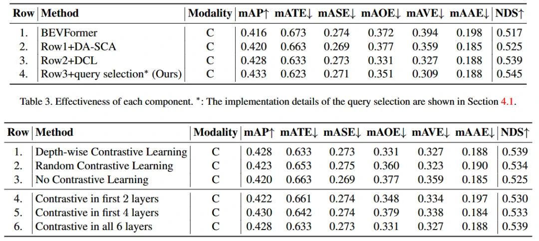 本文提出了一种新方法,通过在空间交叉注意力(SCA)模块中引入深度信息,同时提出了深度对比学习方法 (DCL),有效提高了 3D 检测性能。该方法在nuScenes数据集上得到了较好的性能,超过了现有的基准和最先进方法。