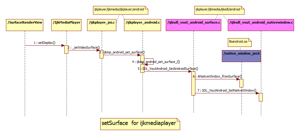 通过接口_setVideoSurface(),把UI层的Surface对象(可以理解为显示窗口)设置给SDL显示对象,作为其显示窗口(native_window),这样SDL有需要显示的内容可以直接在这个显示窗口上显示输出即可。