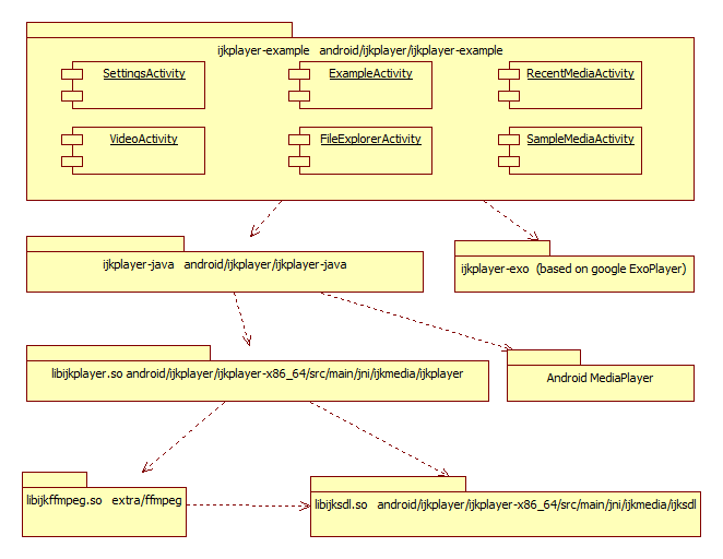 ijkplayer-java:是对底层实现的ijkmediaplayer和android mediaplayer的java封装,对ijkmediaplayer的封装是通过调用底层jni对应的java接口,对android mediaplayer的封装是调用android系统实现的默认mediaplayer接口。