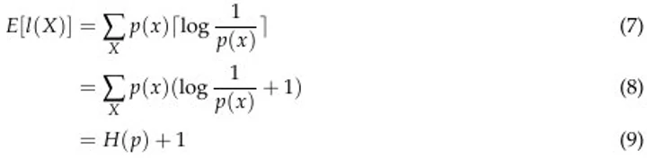 为了得到编码给定概率分布 p 的最优 H(p) 比特数,我们必须将每个码字的长度 l_i 设计成与 log 1/p(x) 成正比。因此,我们按以下方式计算编码 X 的期望长度: