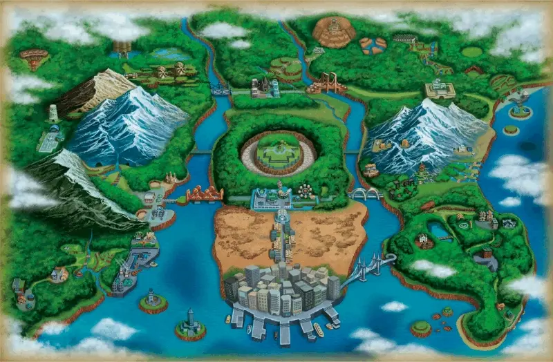 关都地区的原型是日本的关东地方,而城都地区则是参考日本的关西地方和东海地方。
