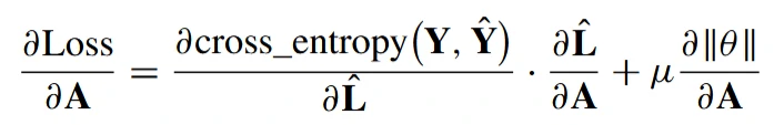 在提出的模型中,使用交叉熵损失函数来衡量真实标签Yi和预测标签Yi之间的差异,并通过后向传播来更新邻接矩阵。更新过程可以描述如下: