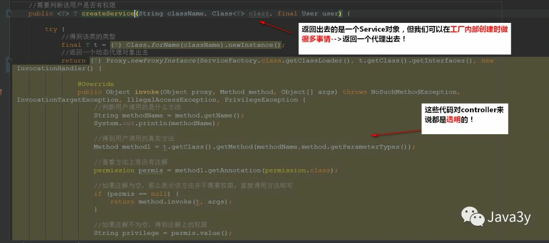 在Service与Controller层我也弄了一个ServiceFactory,根据当时业务的需要(添加权限),我创建Service时就非常灵活了: