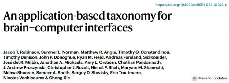 近日,《Nature Biomedical Engineering》期刊发表了一篇题为“An application-based taxonomy for brain–computer interfaces”的评论文章。文章由来自美国、英国、法国、加拿大和瑞士等多国的神经科学、生物医学工程和神经技术领域的专家共同撰写,提出了一种基于应用的脑机接口(BCI)分类体系。该体系旨在为神经技术的评估、监管、政策制定以及临床应用提供更清晰的指导。按照脑机接口的预期应用进行分类,将有助于利益相关者评估神经技术的益处与风险。