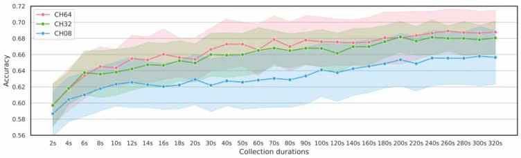 对于脑损伤的DOC患者,平衡EEG采集时长是一个重要的考量,过长的数据采集会导致患者身体不适,甚至可能影响大脑恢复,同时EEG通道数量也会影响临床操作的便利性和患者的舒适,故本实验中本文研究了不同EEG采集时长和通道数量对性能的影响。实验结果如图6所示,综合实验效果和设置成本等因素,当EEG采集时长为240秒,且采用32通道是临床上用于识别DOC的最佳EEG采集选择。
