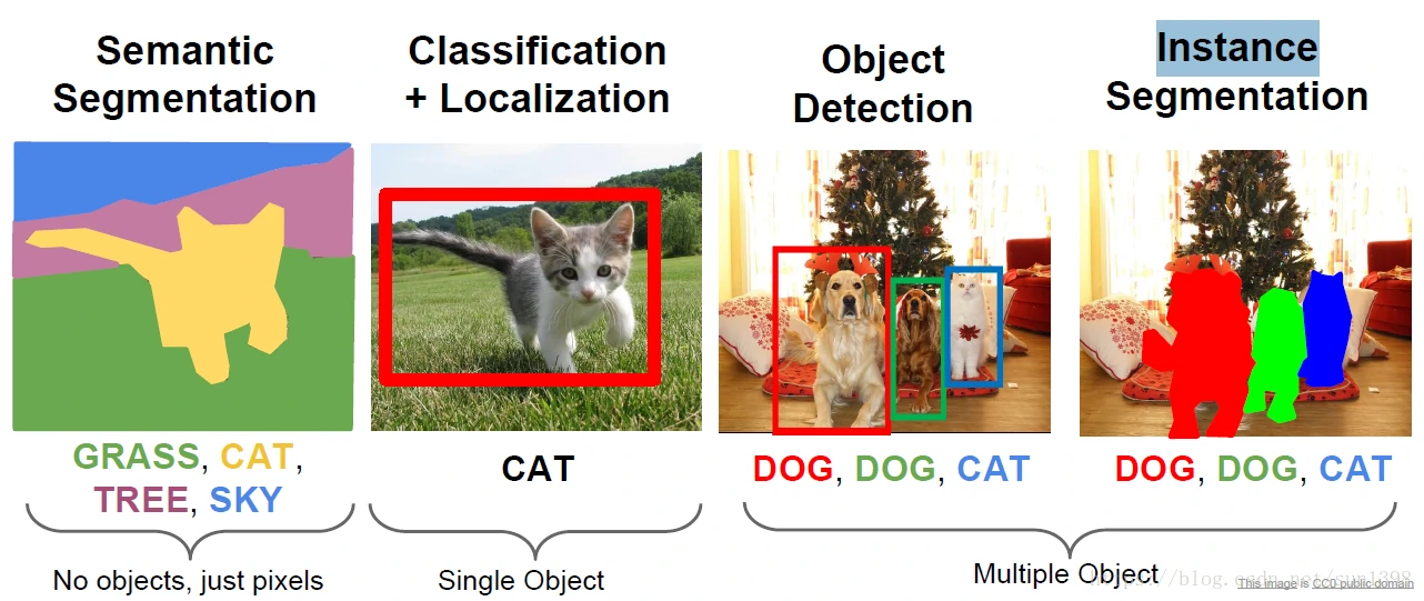 分类与定位,分类问题简单的降图像中识别的物体种类输出,定位给出不同物体所在图片中的坐标,可能需要标注框来框出物体所在目标,而分类+定位问题就是两者皆有