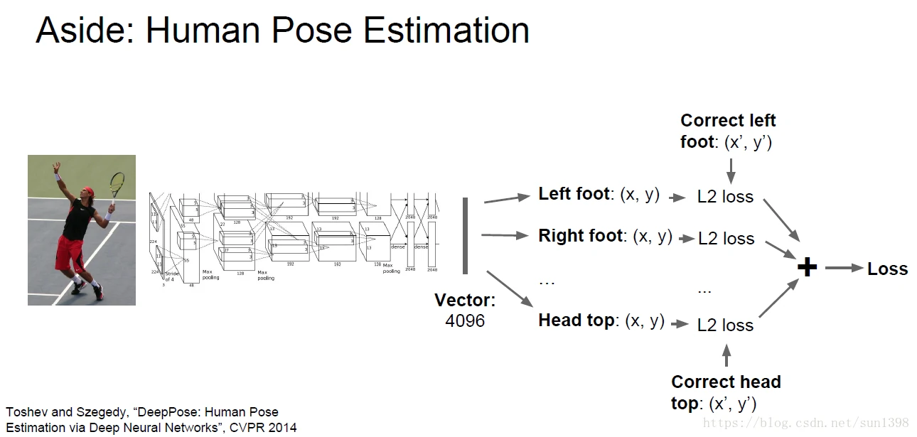 人类姿态识别,主要根据人姿态由关节决定,通过网络计算出不同关节的位置14连接点(joint positions),从而实现运动姿态识别。