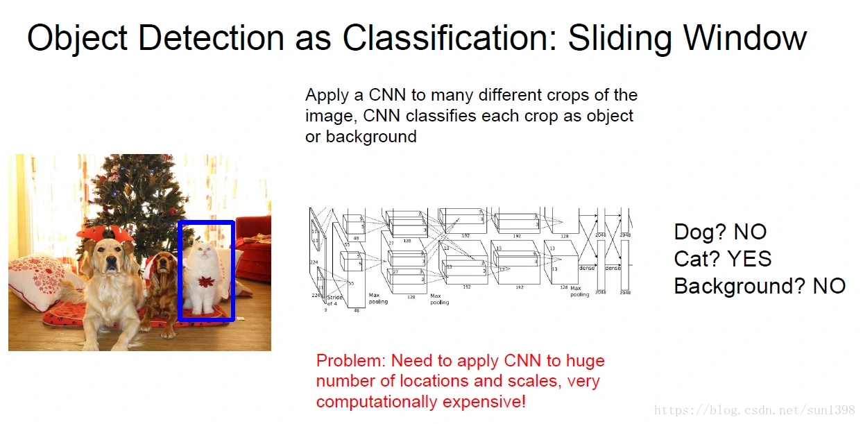可以将图片一部分输入分类器,形成分类问题,将检测问题转换成分类与定位问题,将会变得简单得多。