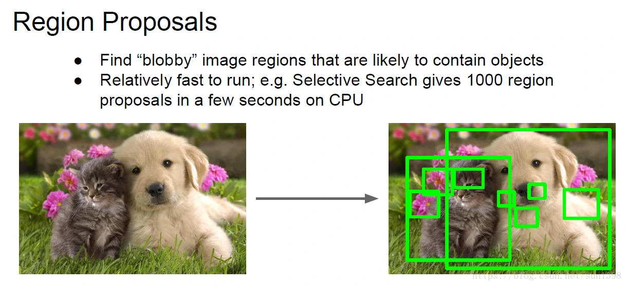 原理是输入图像,然后输出所有可能存在目标的位置,不可知目标分类器,不关心对象具体的类别,精度不高,但是运算速度非常快