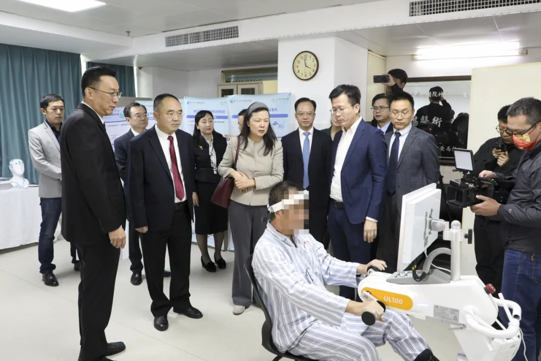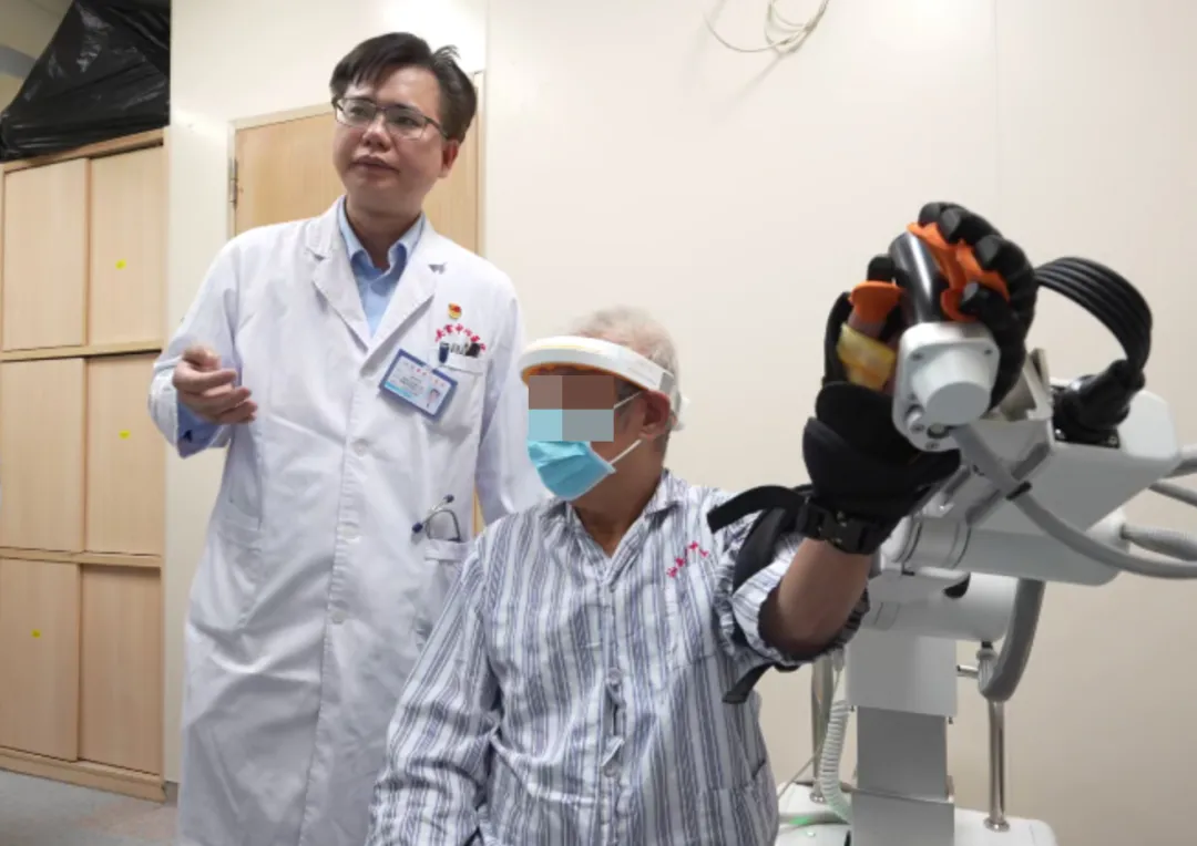 神经内科副主任兼脑血管病区主任黄楚明介绍,在脑血管病的术后康复中,脑控机器人区别于常见康复科运用针灸、理疗、手法等被动方式,通过刺激并重建受损的神经通路,帮助患者实现“主动康复”,提升功能康复的效率。