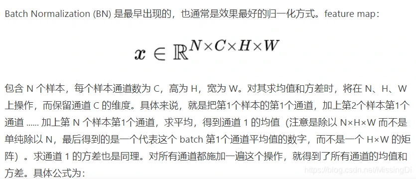 需要注意的是在使用小batch-size时BN会破坏性能,当具有分布极不平衡二分类任务时也会出现不好的结果。因为如果小的batch-size归一化的原因,使得原本的数据的均值和方差偏离原始数据,均值和方差不足以代替整个数据分布。分布不均的分类任务也会出现这种情况!