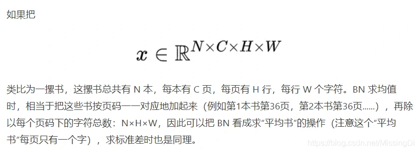 一般情况,LN常常用于RNN网络!把一个 batch 的 feature 类比为一摞书,LN 求均值时,相当于把每一本书的所有字加起来,再除以这本书的字符总数:C×H×W,即求整本书的“平均字”,求标准差时也是同理。