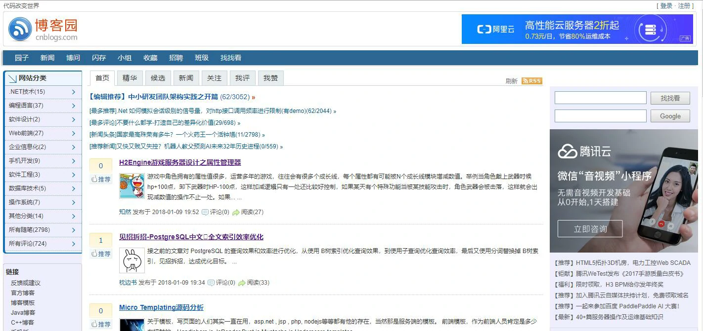 - 平台给人一种陈旧论坛的感觉,博客园作为较早的技术博客空间提供者,即便界面上比CSDN上整齐了一些,但依然不够fashion
