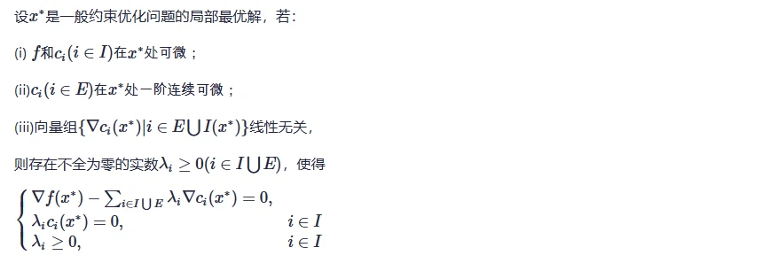- KKT一阶必要性条件(有的地方也称KT条件)