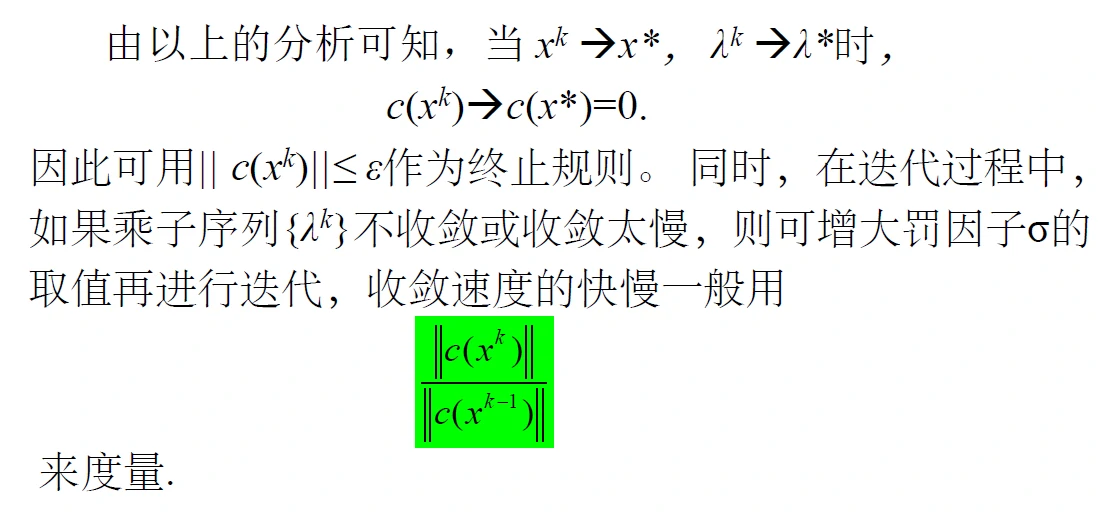 - 根据收敛性,σ越大越好;但是我们直接求解时,用到求导以及hesse矩阵,σ越大,越趋于病态,也就是不好解,这是乘子法所要解决的问题。