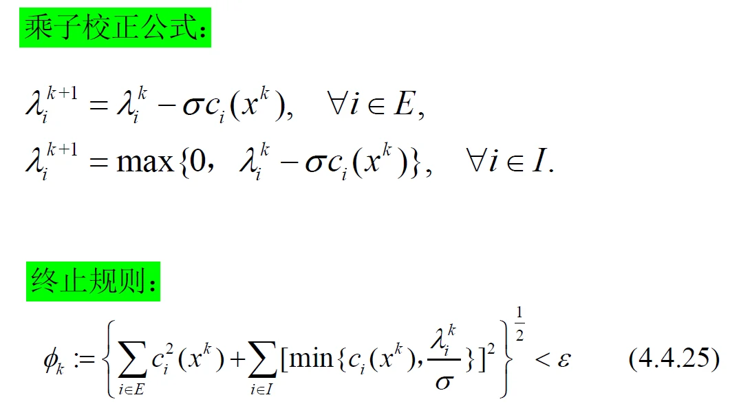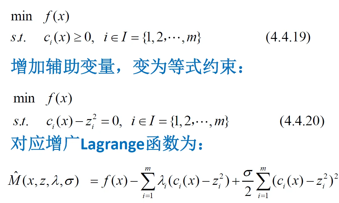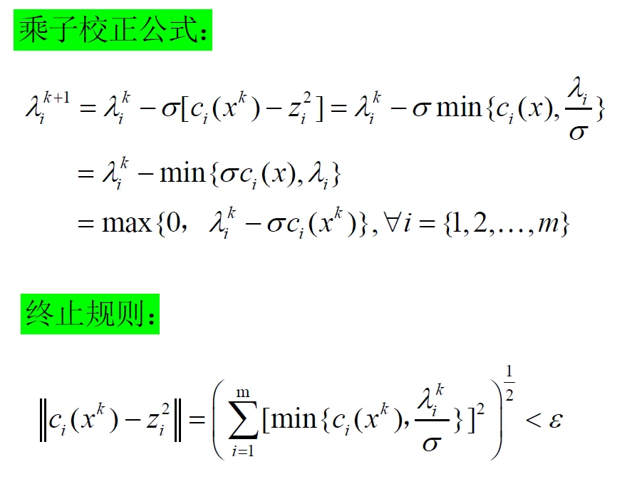 - 不等式约束下的乘子法:先将不等式约束转变为等式约束,再利用等式约束下的乘子法
