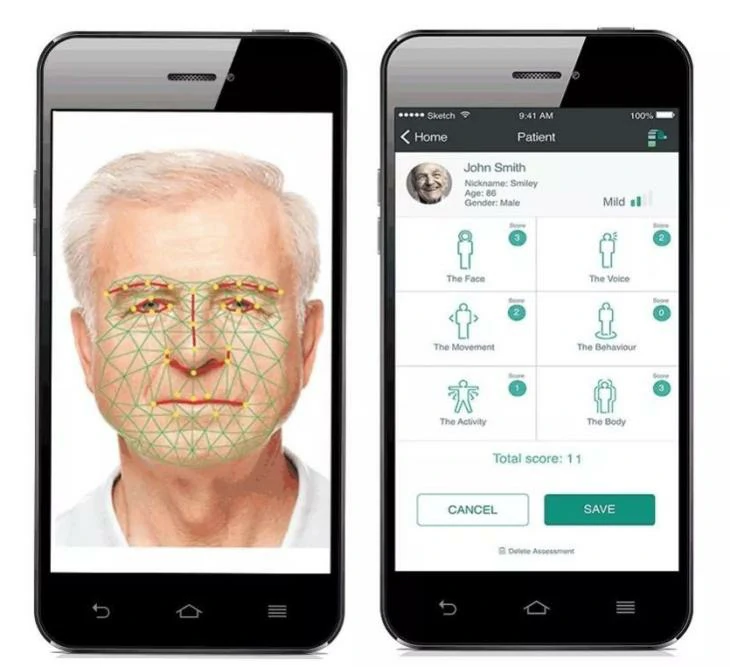 “Painchek®”APP疼痛检测仪使用快捷便利。第一步是护理人员使用“Painchek®”APP智能手机照相机录制一段认知症患者面部短视频、通过面部识别技术研究所拍视频,自动识别那些因疼痛而产生的面部肌肉运动轨迹并记录下来。然后,护理人员使用“Painchek®”APP将他们观察到的患者与疼痛相关的行为(比如:患者如何移动和发声)进行总体评估。最后一步是“Painchek®”APP计算出患者疼痛分值,供护理人员长期监测患者用药和治疗的有效性。