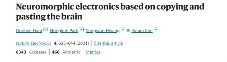 2021年9月23日,韩国三星电子和哈佛大学联手在科学期刊《自然·电子学》(Nature Electronics)发表了一篇题为 ”Neuromorphic electronics based on copying and pasting the brain”(基于拷贝和粘贴大脑的神经形态电子)的论文。论文的主题可以笼统地概括为“复制”与“粘贴”。