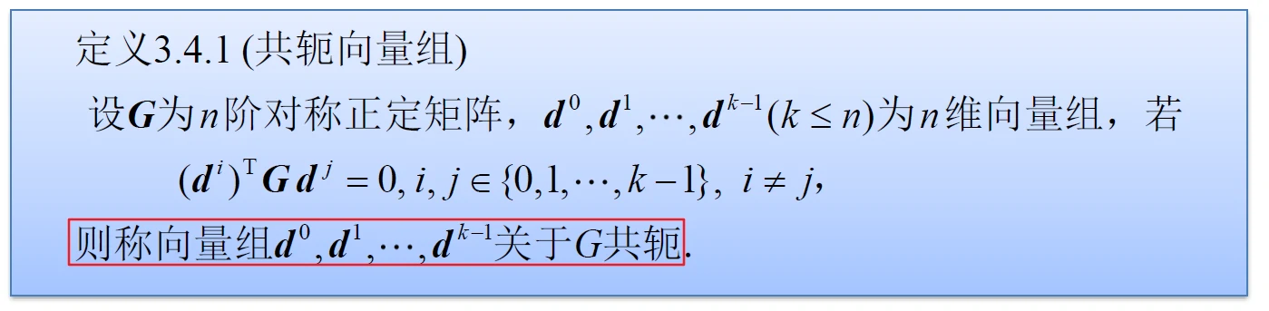 满足上述条件后,称d0,d1,…,dk−1是G的共轭方向。
