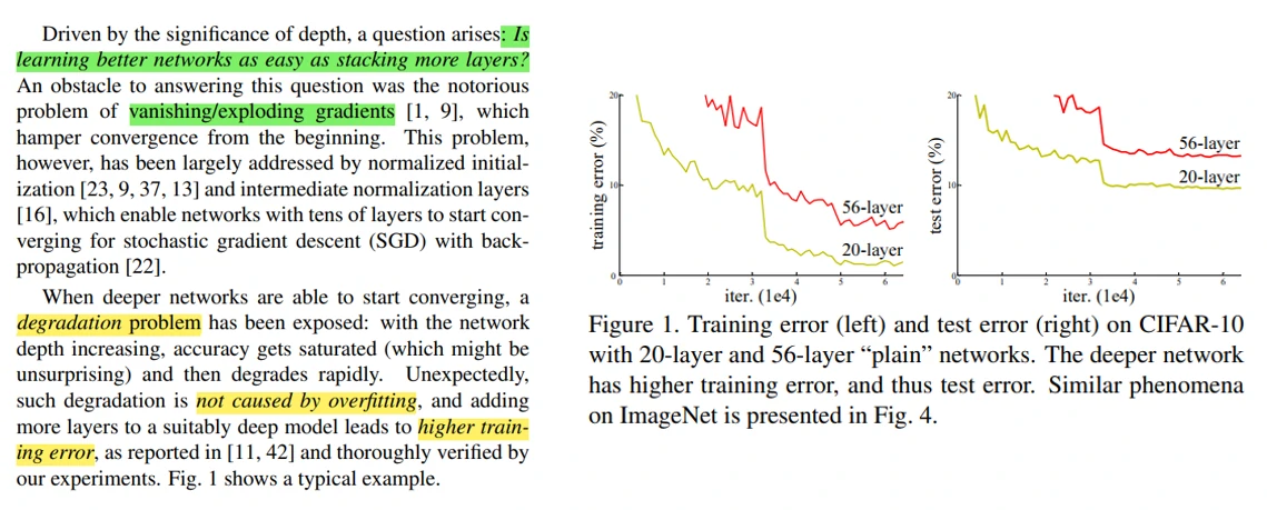 - 第1句话就提出了论文要解决的问题,更深的神经网络很难训练。