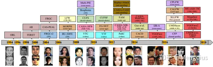 - 美国华盛顿大学发布的百万级人脸数据MegaFace数据集,包括690572个对象和约4.7百万张图像,将人脸数据的规模推向了一个高度。