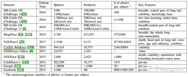 - 2014年CASIA-Webface提供了第一个广泛使用的大规模公共训练数据集。
