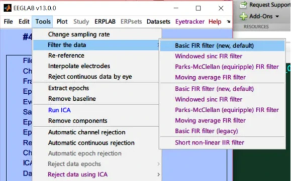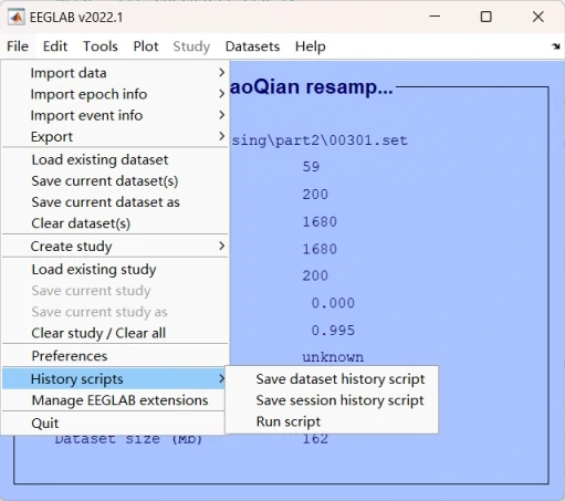 完成一个数据的预处理后,使用EEGLAB的history功能导出脚本,可以用脚本完成重复工作。