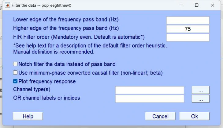 此处,使用默认的滤波器进行1-75Hz的滤波,并滤除50Hz工频。