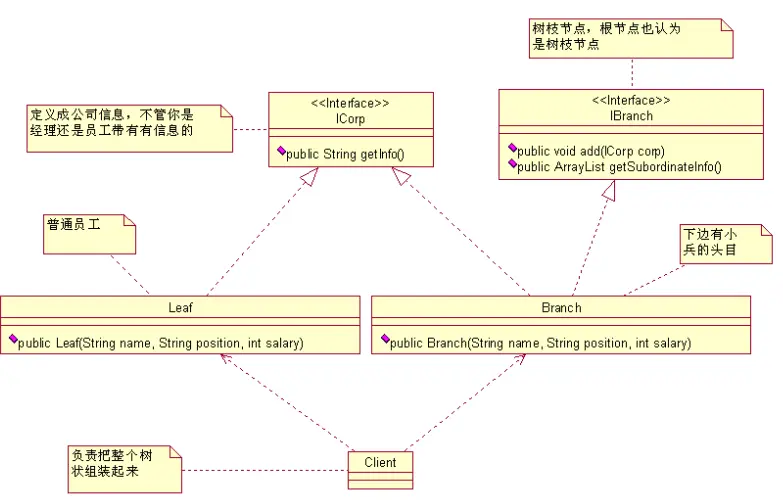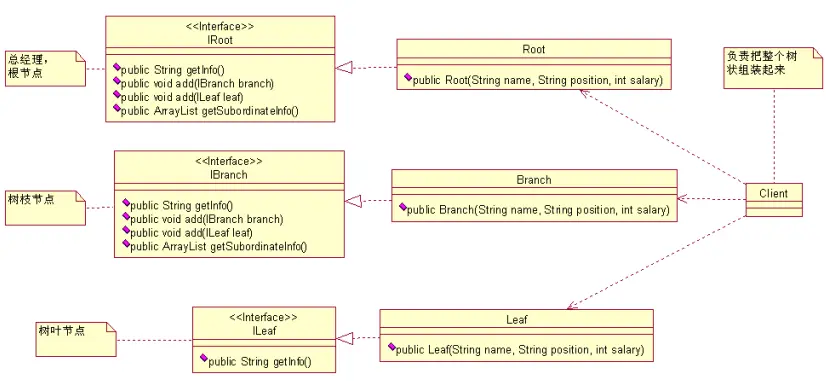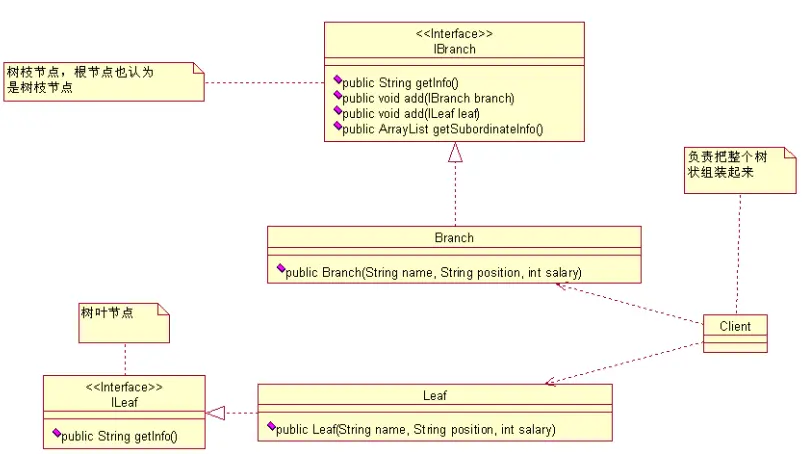 现在我们能理解了吧,上一个类图中 ILeaf 接口中的 getInfo() 方法有重大的嫌疑,你再回去仔细瞧瞧
