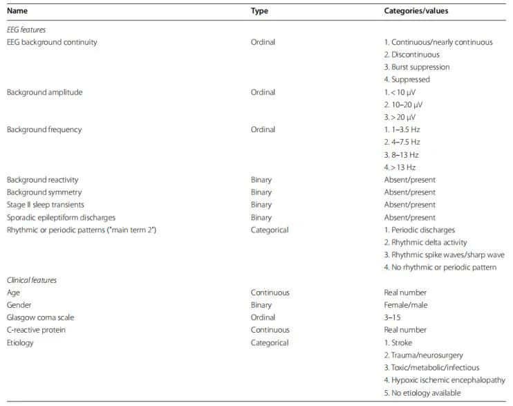 急性意识障碍(ACI,Acute consciousness impairment)患者的早期预后(预测疾病的发展情况)是一项具有挑战性但必要的任务。在对患者进行预后预测时,急性意识障碍的潜在病因被认为是相关的,主要原因有两点:1.不同的病因与不同的死亡率内在相关。如:心脏骤停后的缺氧缺血性脑病(HIE,Hypoxic–ischemic encephalopathy)所对应的死亡率通常高于中毒或癫痫持续状态。2.预后算法和每种模式的相对重要性根据假定的病因而有所不同。这对于脑电图(EEG)尤为明显。