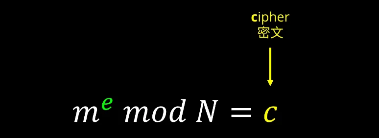 然后我们将结果除以N并取余数,最后得到密文c(cipher)