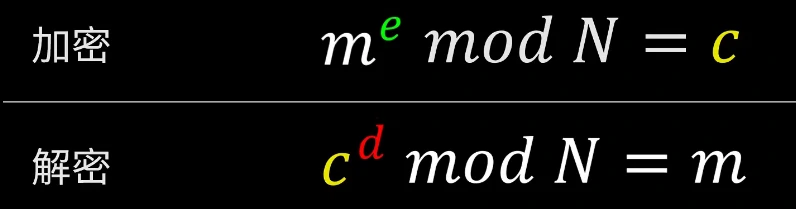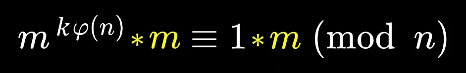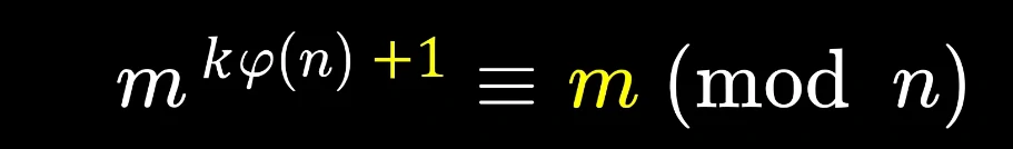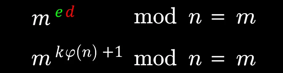 最后我们将模运算写在等式的左边,如果我们将这个公式和之前讲到的加密解密公式对应起来