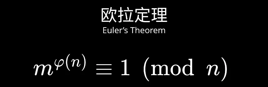 欧拉定理表示,对于任何一个与n互质的正整数m,取它φ(n)次方并除以n取余数,结果都永远等于1。