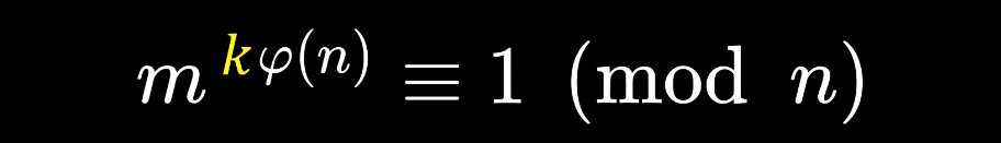 在了解φ函数之后,我们回到欧拉定理,尝试对公式进行一些简单的变换,首先我们可以在等式两端同时取k次幂