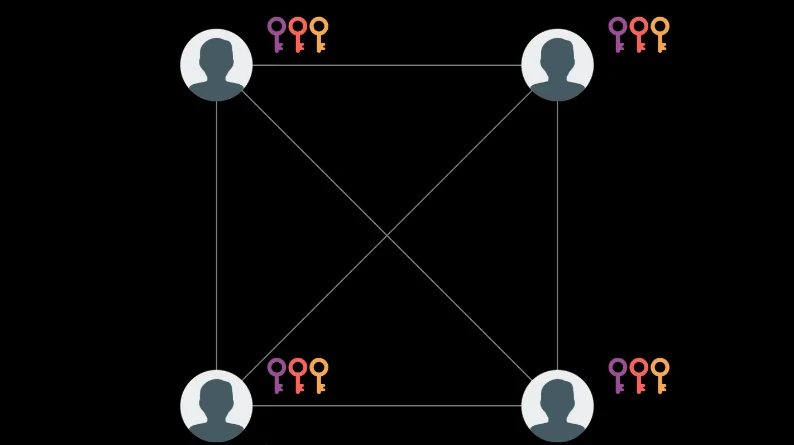 然而这种加密方式有诸多缺陷,随着网络规模的不断增大,每多一个用户就需要保存许多额外的密钥,密钥的管理也将逐渐成为所有人的负担。