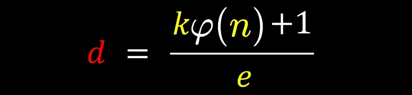 也就是说我们可以通过选取这里的k、n、e,来计算出解密的密钥d