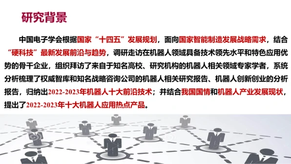 上月底,在2022世界机器人大会闭幕式上,大会发布了《机器人十大前沿热点领域(2022-2023)》。该报告根据国家“十四五”发展规划,面向国家智能制造发展战略需求,结合“硬科技”最新发展前沿与趋势,调研走访在机器人领域具备技术领先水平和特色应用优势的骨干企业,组织拜访了来自于知名高校、研究机构的机器人相关领域专家学者,系统分析梳理了权威智库和知名战略咨询公司的机器人相关研究报告、机器人创新创业的分析报告,归纳出2022-2023年机器人十大前沿技术;并结合我国国情和机器人产业发展现状,提出了2022-2023年十大机器人应用热点产品。