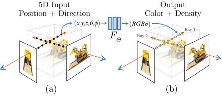 NeRF指的是将一个连续场景表示为一个输入为单个连续5D向量的函数。Neural Radiance Fields里面的Radiance Fields指的是映射函数gθ,Neural Radiance Fields则是指用神经网络拟合映射函数gθ。