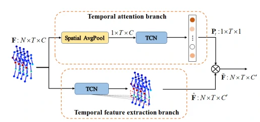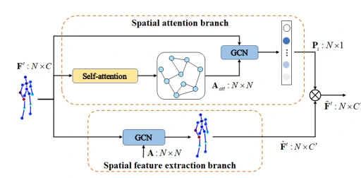 STA模块利用了图结构来对骨骼数据进行建模。空间时间注意力图卷积包含了空间注意力图卷积和时间注意力图卷积两个分支: