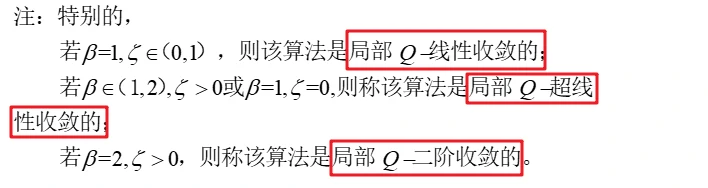 全局收敛与局部收敛:如果对于任意的初始点x0,算法是收敛的,则称该算法是全局收敛的。如果只有初始点x0充分靠近最优解时,算法是收敛的,则称该算法是局部收敛的。