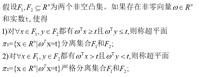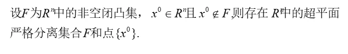 定理1.3.2 不在凸集内的点可以被超平面严格分离