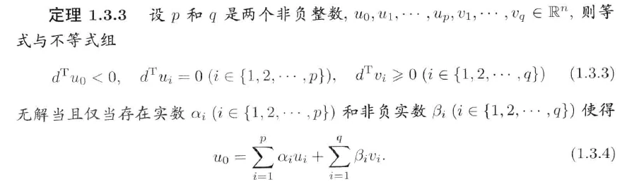 引理 1.3.1 Farkas引理