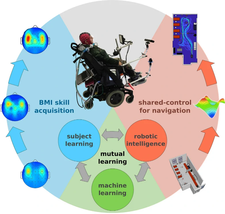 本新闻研究来源于2022年12月发表在《iScience》的论文《Learning to control a BMI-driven wheelchair for people with severe tetraplegia 》。作者是来自意大利帕多瓦大学 的Luca Tonin等人。
