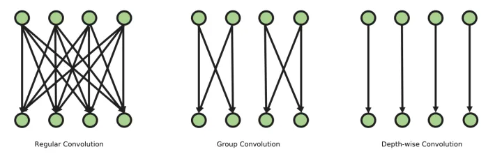 - 加宽网络(高维度)时,标准卷积的通道全连接结构会容易造成通道冗余,尽可能规避这种情况。