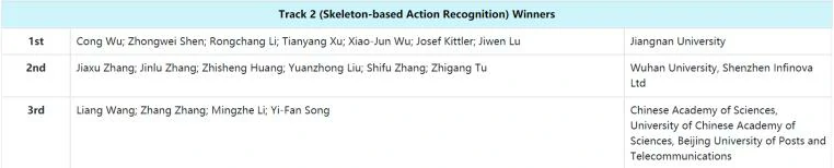 基于骨骼的动作识别的发展近况,除了可以从各大计算机视觉顶会和顶刊进行了解外,还可从国内外举办的各个动作识别竞赛中了解到当前动作识别,特别是在自然应用场景下的发展水平。下面罗列出近期的几大竞赛。