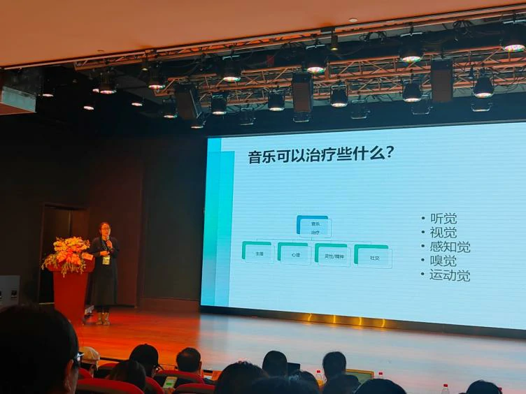 同时,国家卫生系统主管心理治疗师张星讲解儿童游戏治疗抚平重症儿童治疗创伤方面的内容,张琪女士介绍音乐治疗在北京肿瘤医院的项目建立和发展,香港大学副研究员唐燕来分享了人文关怀照亮前方之新模式见解等等。各行各业专家结合自身经历,分享实践过程中得出的一些新见解、新方法,更有对音乐治疗新模式的共同探讨,旨在相互交流学习,更好的服务病人,借助音乐这一有效工具更好的助力于临床患者的康复。