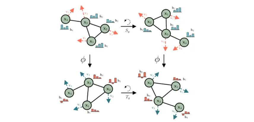过去,研究者们通过构建线性变换来揭示信号的特性。物理学家在设计基于群作用的不同对称的等价变换方面尤为领先。这些群作用包括,仿射群上的小波变换、Weyl-Heisenberg 群的线性时频分析等。关于数学物理中相干态领域的工作提出了一种通用的解决方法:通过使用群表示对函数进行参数化,从而构建某种线性变换。2021 年,一些出色的论文进一步引入了非线性和可学习的参数化函数,赋予了 GNN 对称性,使它们在物理或化学问题中大放异彩: