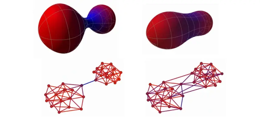 Francesco 对偏微分方程方法特别感兴趣,这种方法最初被用于研究曲面,Francesco 等人用它来处理图像。他们探索了「图重连」的思路,「图重连」指的是对底层邻接关系的修改,它属于对几何流方法的拓展。此外,他们还利用基于边的曲率的新概念来研究 GNN 中的过压缩问题,并提出了一种图重连方法。对于保持和破坏对称形式的分子,几何也被认为是将 GNN 应用于分子的关键因素。
